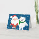 Une image mignonne du Père Noël et de son ami ours polaire avec des flocons de neige en arrière-plan, est présentée sur cette carte de vœux de vacances. À l'intérieur de la carte, on lit : « Je vous souhaite un joyeux Noël et une bonne année ! ». Cela en fait une excellente carte pour envoyer vos vœux de Noël à vos amis !