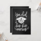 Carte de voeux de graduation avec Vous l'avez fait et Hip Hip Hip Hooray messages de calligraphie moderne et bouchon de graduation sur tableau noir arrière - plan. Conception parfaite pour Changer le texte de salutation au dos avec l'outil Zazzle facile à utiliser! Visitez le magasin pour voir toute la collection.