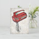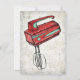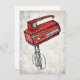 Electric Hand Mixer est équipé d'un mélangeur de cuisine vintage en rouge avec des garnitures blanches, aqua et noires sur un arrière - plan en détresse blanc.