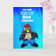 Une drôle de carte de Fête des pères qui a un arrière - plan bleu cool, et une image d'un pingouin hip-hop/rapper avec le dicton "To The Coolest Dad Around". Ajoutez votre propre message personnel à cette carte ou modifiez le texte à l'aide du modèle customisé.