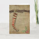 Carte de voeux primitive de Noël avec un bas de mère patrie pendant d'une brindille.