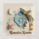 Cette carte de vœux est vraiment spéciale pour son esthétique artisanale, imitant un magnifique design de découpe de papier multicouche. Les motifs complexes de cœur et de fleurs, associés aux couleurs pastel douces, lui donnent une sensation tendre et spirituelle. Incorporant la figure priante et les lanternes, elle sert de moyen hautement décoratif et significatif de souhaiter à quelqu'un "Ramadan Kareem".