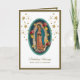 Ceci est une belle image catholique traditionnelle personnalisée de la Vierge Marie, Notre-Dame de Guadalupe avec des étoiles dorées. À l'intérieur se trouve la même image superposée sur un "M" marial. Tout le texte et les polices peuvent être modifiés pour s'adapter à l'occasion et au destinataire.