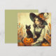 Célébrez la magie de la saison effrayante avec cette carte de vœux carrée de 5,25" x 5,25" présentant une illustration rétro d'une charmante sorcière entourée de délices classiques d'Halloween. Avec son doux sourire et son chapeau pointu de sorcière élégamment haut, la jolie sorcière au centre de la scène apporte juste ce qu'il faut de douceur et de malice saisonnière. Assis loyalement à ses côtés se trouve un chat noir élégant, le compagnon d'Halloween par excellence, ainsi qu'une citrouille-lanterne lumineuse et une collection de citrouilles dodues nichées parmi un feuillage automnal vibrant. Le design déborde de détails nostalgiques et de couleurs automnales riches, capturant l'esprit d'une soirée d'octobre cosy avec un fort clin d'œil aux styles artist