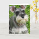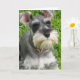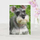 Chien de Schnauzer miniature assis dans la carte de voeux de gazon.