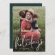 Une carte de vœux simple avec écriture moderne et photo joyeuses fêtes avec une police manuscrite et une photo de portrait en pleine page sur le devant avec le nom de la famille. Le verso comporte une deuxième photo avec un message de vœux sincère de la part de la famille. Cliquez sur le bouton modifier pour personnaliser ce design.