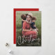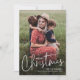 Une carte de vœux de Noël simple avec écriture moderne Joyeux Noël avec une police manuscrite et une photo de portrait en plein cadre à l'avant avec les noms de la famille et des individus. Le verso comporte une deuxième photo avec un message de Noël sincère de la famille. Cliquez sur le bouton modifier pour personnaliser ce design.