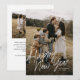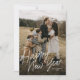 Carte de vœux festive avec une calligraphie moderne et amusante sur une photo pleine page, ainsi qu'une deuxième photo au verso et un espace pour votre message.
