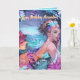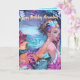 Carte d'anniversaire sirène aquarelle dans la mer. Ce design aquarelle présente de nombreux tons de bleu et de rose. Le fond comporte des vagues océaniques et un ciel coloré. La sirène porte ses cheveux relevés avec un bandeau de fleurs. Plongez dans l'enchantement ! Parfait pour les amateurs de sirènes. Illuminez la journée de quelqu'un avec cette carte époustouflante.
