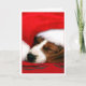 Un chiot dort paisiblement sous un chapeau de Père Noël.