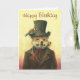 Cette carte est illustrée d'un renard victorien en forme de chapeau haut avec deux doigts dorés perchés sur lui. Ci-dessus exécute le texte Joyeux anniversaire.