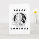 Vaches dans l'espace ! Le Texas longhorn amical rejoint l'âge de l'espace complet avec combinaison spatiale, lariat et vaisseau spatial.