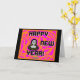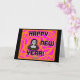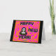 Vous pouvez admirer mon dessin du Nouvel An d'un alien gris avec des motifs orange et rose, le texte dit : "Bonne année !" J'appelle ce dessin "Vœux du Nouvel An des Grises", ajouté à cette carte de vœux horizontale standard pour souhaiter à quelqu'un une "Bonne année".