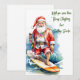 Apportez la joie de la plage à vos vœux de la saison avec notre carte plate de vacances Surfing Santa générée par l'IA. Cette carte de vacances présente un design amusant et unique, parfait pour tout surfeur ou amateur de plage.