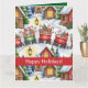 Partagez la magie de la saison avec cette carte de voeux de Noël avec un charmant village vintage et un train de vacances festif. L'oeuvre nostalgique capte la chaleur et l'émerveillement du passé de Noël, ce qui en fait une façon délicieuse d'encourager la famille et les amis. Personnalisez avec votre propre salutation, nom de famille ou message sincère pour créer un souvenir unique. Parfait pour répandre la joie près ou loin, cette carte personnalisable combine style de vacances intemporel avec votre touche personnelle.