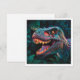 T Rex se promène dans la jungle ; on l'entend presque rugir comme il apparaît au milieu du feuillage ouvert-bouche. Peinte dans des couleurs irisées, cette carte d'anniversaire unique convient à un garçon ou une fille, ou à toute personne qui a une passion pour les dinosaures. De plus, vous pouvez ajouter votre propre message personnel n'importe où sur la carte.