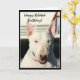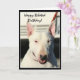 Carte de voeux tardive heureuse de bull-terrier d'anniversaire