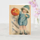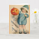 Carte de voeux vintage/victorienne de Halloween. Petite fille adorable tenant Jack-o'-lantern ! Peut votre Hallowe'en être joyeux !