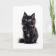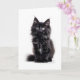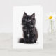 Doux chaton noir à poils longs avec une touche de fourrure blanche sur la poitrine.