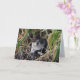 Le blanc gauche pour votre message personnalisé, cette carte montre un chat sauvage chéri qui était se situer découvert dans un plante dans ma cour. Il s'était fait un petit lit à la base de ce plante où il pourrait trouver la chaleur, le confort, et un endroit pour se reposer. Se situer dans son lit de plante est un beau chat sauvage rayé gris avec de petites pattes blanches, coffre blanc et yeux somnolents. Cette carte est parfaite pour chaque amoureux des chats.