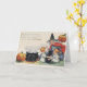 Rétro/vintage carte de voeux de Halloween. Deux petits enfants avec un chat noir, une sorcière et des cric-o-lanternes ! Par des citrouilles la graisse et les sorcières se penchent, par les chats noirs de charbon avec des yeux de vert, par toute la magie jamais vue, je vous souhaitent la chance ce Halloween !
