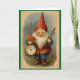 Douce image vintage d'un gnome avec des fleurs et une horloge, est présentée sur cette carte de vœux pour le Nouvel An. L'intérieur de la carte indique : "Meilleurs vœux pour une année heureuse et saine pour vous et votre famille également." Une charmante carte à envoyer à la famille et aux amis pour les fêtes du Nouvel An.