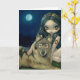 "Wolf Moon" est le titre - un épisode de ma série Wolves. Une belle fille (peut-être un loup sous forme humaine ? un loup-garou ?) se trouve devant une pleine lune avec son compagnon de loup élégant. Si vous regardez de plus près, vous verrez qu'elle a un tatouage de l'empreinte d'un loup.... Ma peinture acrylique originale