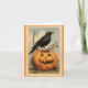 Cette carte de voeux d'Halloween présente une photo magnifique et vintage d'un corbeau assis sur un citrouille. A l'intérieur de la carte on peut lire : "A la volée des corbeaux, passez un Halloween heureux !". Une carte de voeux mignonne pour envoyer famille et amis pour Halloween.