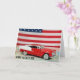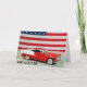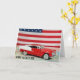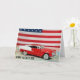 Vieille voiture rouge et blanc 1955 Chevy sur une carte routière avec arrière - plan de drapeau américain pour la Fête des pères. Le texte est modifiable.