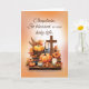 Étendez vos voeux d'action de grâces sincères à un diacre dédié avec cette carte spéciale. Le design de la carte capte magnifiquement l'essence de l'automne, avec des citrouilles, des feuilles et une bougie radiante. Le crucifix de premier plan symbolise la foi et l'orientation, reflétant l'engagement du diacre. À l'intérieur, express votre gratitude pour leur service et leur dévouement. Envoyez des bénédictions chaleureuses pour un Thanksgiving joyeux.