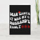 Carte Dear Santa It Was My Husband's Fault Funny Christm