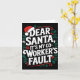 Carte Dear Santa It's My Coworker's Fault Santa Hat Holi