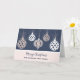 Joyeux Noël pour l'amie et sa carte de famille avec un design moderne avec ornements en or rose et arrière - plan bleu.