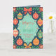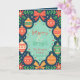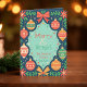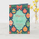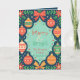 Illuminez vos vœux de vacances avec cette carte de Noël Merry & Bright, une célébration vibrante et folklorique du style festif rétro. La carte est un spectacle visuel de feux d'artifice, avec des ornements détaillés et colorés suspendus comme des bijoux scintillants autour d'un panneau central bleu clair. Les lettres rouges et vertes en gras ressortent sur le fond, prêtes à recevoir le nom de votre famille et l'année. Deux rubans rouges et dorés charmants encadrent le design, reliant la composition. Le fond bleu foncé riche est parsemé d'étoiles scintillantes, créant une atmosphère magique de nuit d'hiver.