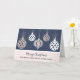 Joyeux Noël pour petite-fille et sa carte de famille avec un design moderne avec ornements en or rose et arrière - plan bleu.