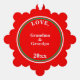 Joyeux premier Noël écrit dans la typographie rouge enneigée contre l'arrière - plan blanc. Baby Boy NAME écrit dans un texte bleu vif. Dos est couleur rouge uni avec le texte en blanc Amour, Grand-mère & Grand-père ANNÉE (personnalisez avec n'importe quel nom). Regarder des lumières colorées fêlées en rouge, vert, bleu, orange, jaune, rose à l'extérieur de la frontière. L'intérieur double anneaux en vert et rouge festif avec des cercles géométriques plus petits en argent et or soulignés en bleu ciel. Oeuvre originale Design par TamiraZDesigns.
