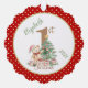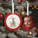 Celebrate a special milestone with this charming "1st Christmas" photo ornament. Featuring an adorable teddy bear in a Santa hat beside a beautifully decorated tree, it's the perfect finishing touch for your little one's first festive season. The rich red and gold polka dot border adds a classic, joyful touch to any holiday decor.