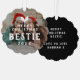 For the best friend. A lovely keepsake gift for your best friend. Honor and celebrate your friendship with this paper ornament which can be used as a decorative tree ornament or gift tag or however you choose to use it. This paper ornament can be personalized with the inclusion of your choice of photo (there will be a dark overlay over the photo so that the text can stand out so your photo may appear a tad darker but it will still show) and the year. On the back is where you can include your own short message. Celebrate your friendship this Christmas with this super adorable Christmas photo keepsake ornament card.