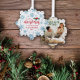 Belle flocon de neige en forme de joyeux carte de Noël et ornement en un imprimé avec votre photo, jolies flocons de neige bleus, baies sèches rouges avec feuilles verts, et votre nom et l'année.