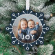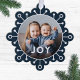 Envoyez des salutations de vacances uniques avec ces cartes de Noël amusantes qui se double comme des ornements ou de grandes étiquettes cadeaux! Ils présentent un design simple de flocon de neige, une typographie moderne lisant JOY, et un modèle photo en forme de cercle sur un arrière - plan bleu marine foncé. Un dégradé foncé au-dessus du bas de votre photo permet au texte de se démarquer. Il peut être ajusté, si nécessaire. Le dos de la carte ornementale contient des modèles texte pour un message et la personnalisation.
