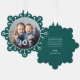 Envoyez des salutations de vacances uniques avec ces cartes de Noël amusantes qui se double comme des ornements ou de grandes étiquettes cadeaux! Ils présentent un design simple de flocon de neige, une typographie moderne lisant JOY, et un modèle photo en forme de cercle sur un arrière - plan turquoise foncé. Un dégradé foncé au-dessus du bas de votre photo permet au texte de se démarquer. Il peut être ajusté, si nécessaire. Le dos de la carte ornementale contient des modèles texte pour un message et la personnalisation.