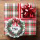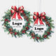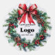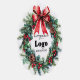 Custom "Happy Holidays" budget paper ornaments for clients personalized with your business logo, a festive wreath, and an elegant red bow. Company promotional supplies for the Holidays, you can order in bulk for your employees or as branding and marketing supplies to promote your store to customers.