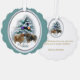 Deux adorables pomeranians posent devant un arbre de la forêt décoré. Belle œuvre d'art de vacances pour les amateurs de pom. Grands cadeaux de Noël, cartes de Noël, ornements, sweat-shirts, plus.