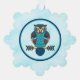 Un chouette brun et bleu, fait dans le style d'art populaire nordique, superposé sur une image arrière - plan enneigée. Vous pouvez supprimer l'anneau de bordure. Customisez en ajoutant votre propre texte à l'envers. Dans la mythologie normande/viking hiboux symbolisait la sagesse et l'illumination. Les Scandinaves modernes associent les chouettes à la prospérité, à la fortune et à l'intelligence.