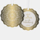 Carte classique contemporaine de Noël de saison ornementale avec couronne de mandala couleur blanc cassé en ivoire sur un arrière - plan métallique en faux or classique. Avec l'option et la place pour customiser le texte, le nom de famille et la date de l'année, et ajouter une photo personnelle de votre choix sur le devant, et un message de salutation de saison personnalisable sur le côté arrière de la carte.