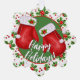 Carte unique, classique, mignonne et décorative des fêtes de Noël avec des mitaines rouges Père Noël sur un classique Holly baies et feuille motif arrière - plan et classique Happy Holidays citent le texte. Avec place pour customiser ou personnaliser avec nom de famille, salutation, ou souhait de votre choix.