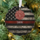Honor the bravery and dedication of firefighters with this rustic Thin Red Line Christmas ornament. Featuring a distressed American flag background and a bold red line, this keepsake adds a meaningful touch to any holiday tree.