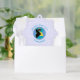 Sur ces cartes personnalisées en papier, un ange noir porte le drapeau de Bahama et vole au centre d'un cercle fractal numériquement, texturé, bleu. Les couleurs primaires de ce design sont le bleu et le blanc, choisis avec Hanoukka à l'esprit. Les lettres bleues lisent BAHAMAN ANGEL et font un espace pour l'année et un nom, vous permettant de créer des papiers customisés ornements pour votre fête ou événement, et personnaliser le look. L'Arrière - plan est un carré blanc grognement. Vraiment amusant pour les soirées Hanoukka, les bat mitzvah et autres occasions spéciales. Idéal aussi pour envoyer des cartes de voeux.