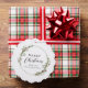 Carte de décoration de vacances personnalisée avec une couronne d'aquarelle minimaliste avec des baies rouges et des accents de feuillage vert. Cette élégante couronne encadre le salut "Joyeux Noël". Facile à personnaliser avec votre nom de famille.
