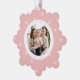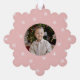 Envoyez des voeux de vacances à vos amis et à votre famille cette année avec notre carte unique de décoration de Noël Elegant Pink and White Snowflake. L'avant de la carte affiche votre photo encerclée d'un cadre blanc avec un arrière - plan à motif rose clair et blanc. Personnalisez l'avant de la carte ornementale de flocon de neige avec votre message personnalisé, votre nom et l'année en lettres roses. La carte ornementale moderne s'inverse pour afficher une photo supplémentaire.